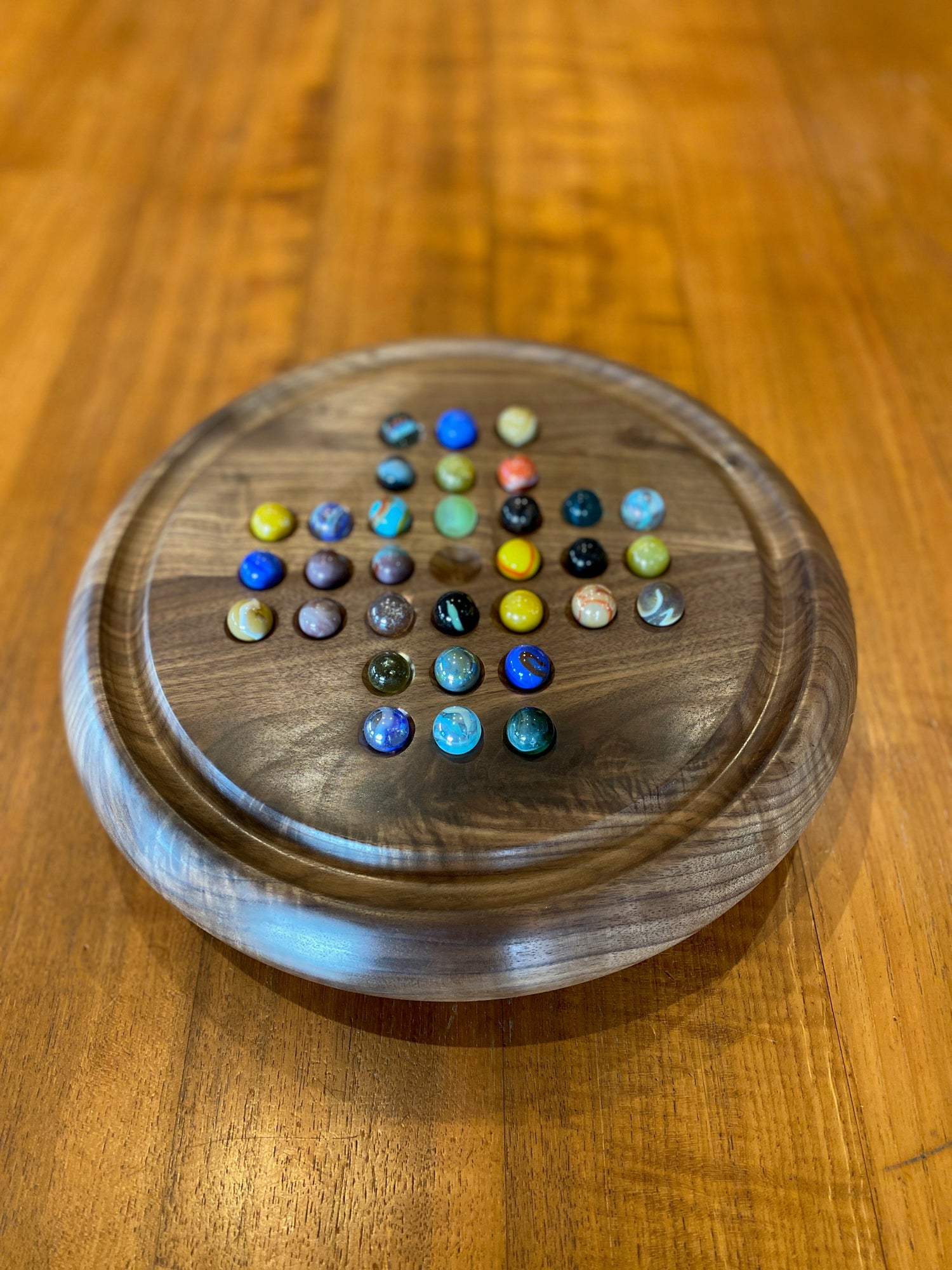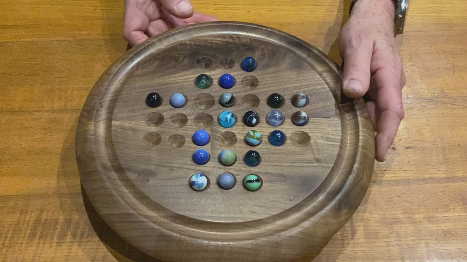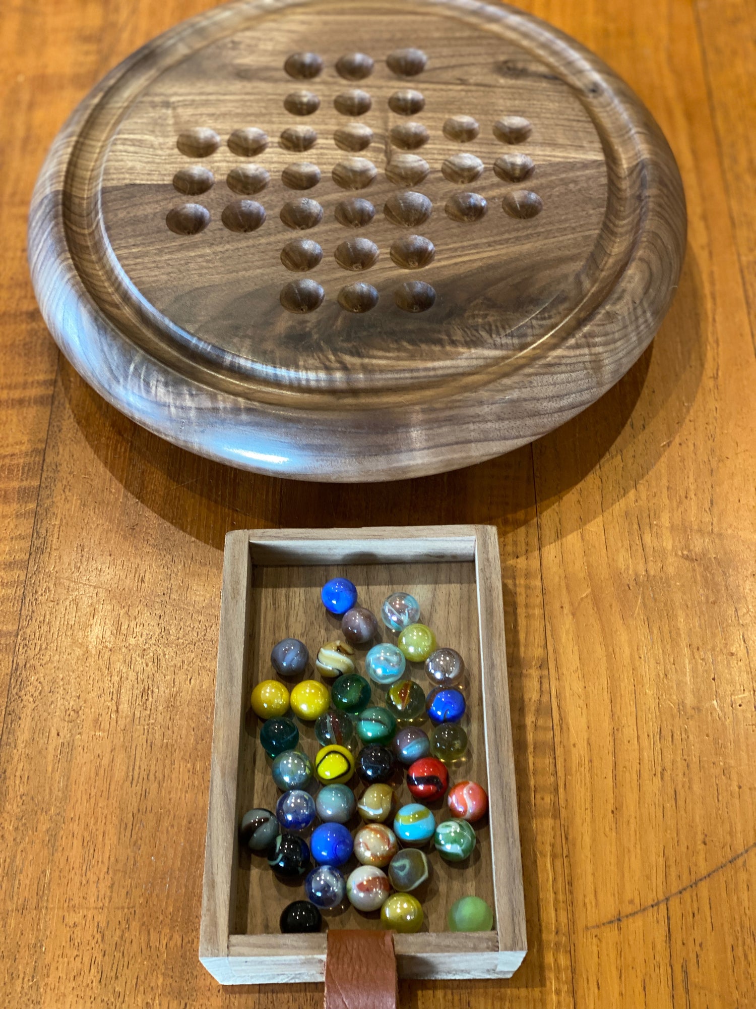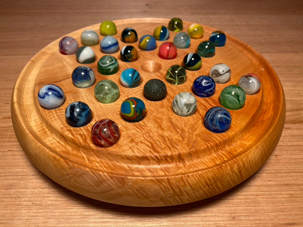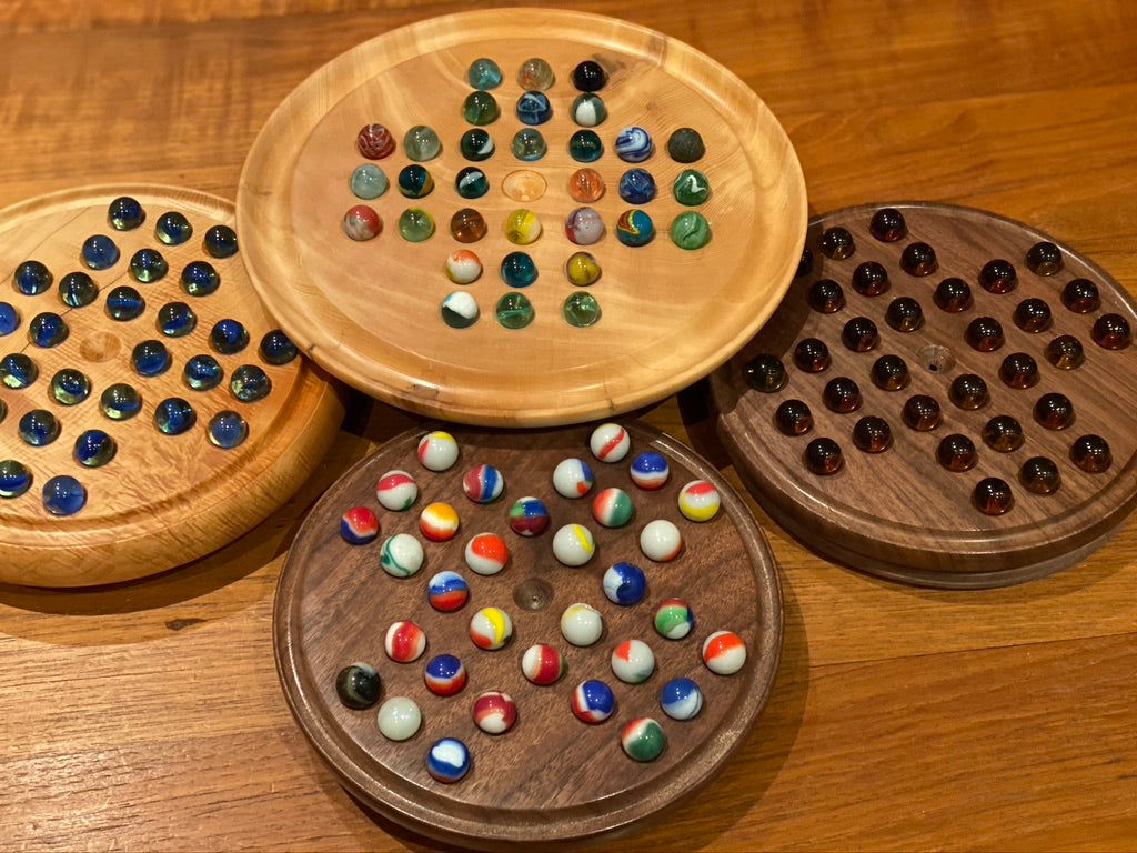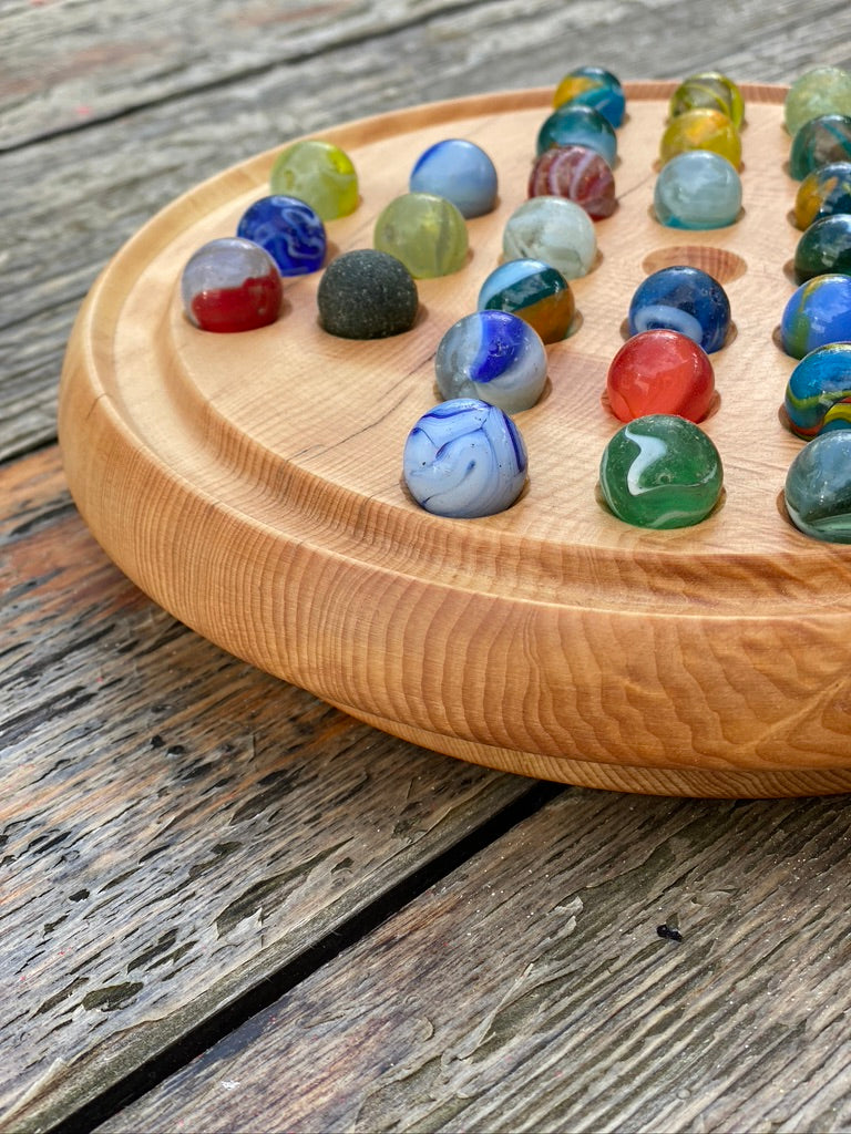 My solitaire marble sets are inspired by my cherished grandfather's very old oak solitaire set kept in the games cupboard under the bay window. The idea is that you try and remove as many marbles as possible, by jumping only one marble at a time - and only forward or sideways - no diagonal moves allowed.