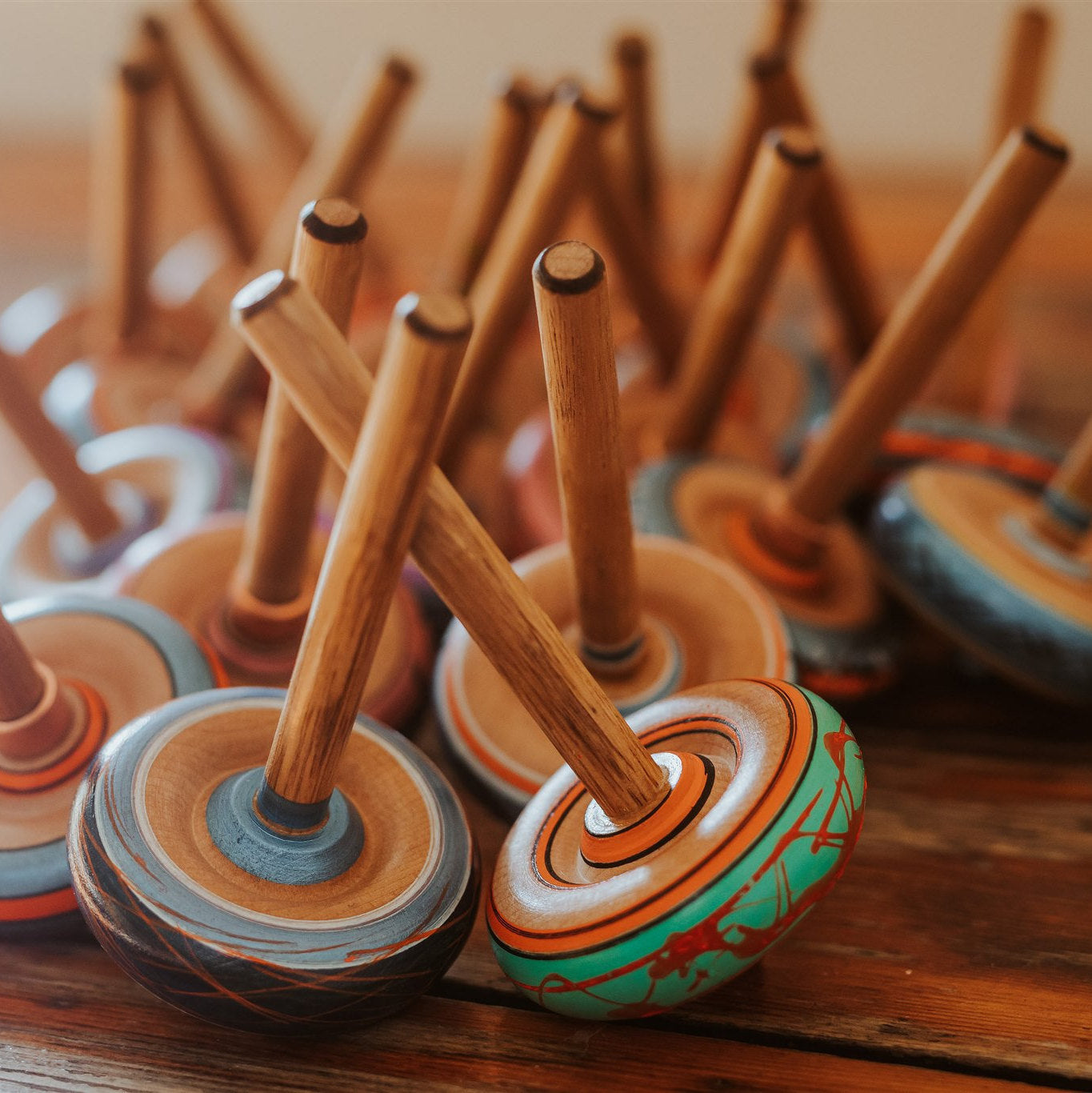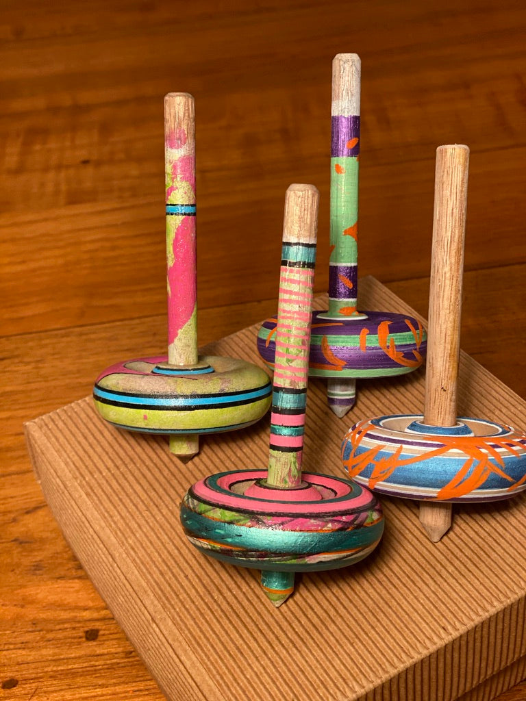Painted and varnished to last, these work the way tops are meant to - watch my video to learn the two-handed technique!